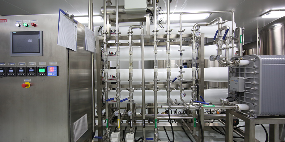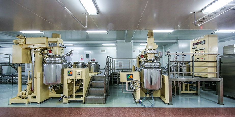使用RO水质处理系统,经过逆渗透的过滤及紫外线杀菌装置,所得的药用级水质,保证了产品的品质。乳霜类产品的调制制造完全采用国内外精密电脑全自动设备,在精密技术的支持下,创造出超高转速及真空度让膏体绵密细致光泽亮丽。并引进国外质量领先的化妆品生产线,具备封闭式空调车间,大型真空乳化机,自动灌装生产线设备,先进的检测系统,净化处理系统,消毒过滤系统,并设有完备的微检室和生化检验室。